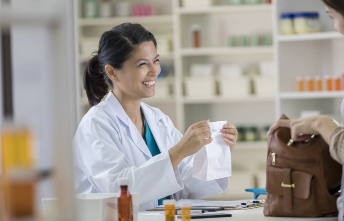 Gemma Howarth is talking to pharmacy technician Vicky about a prescription she has brought in for her son Josh.